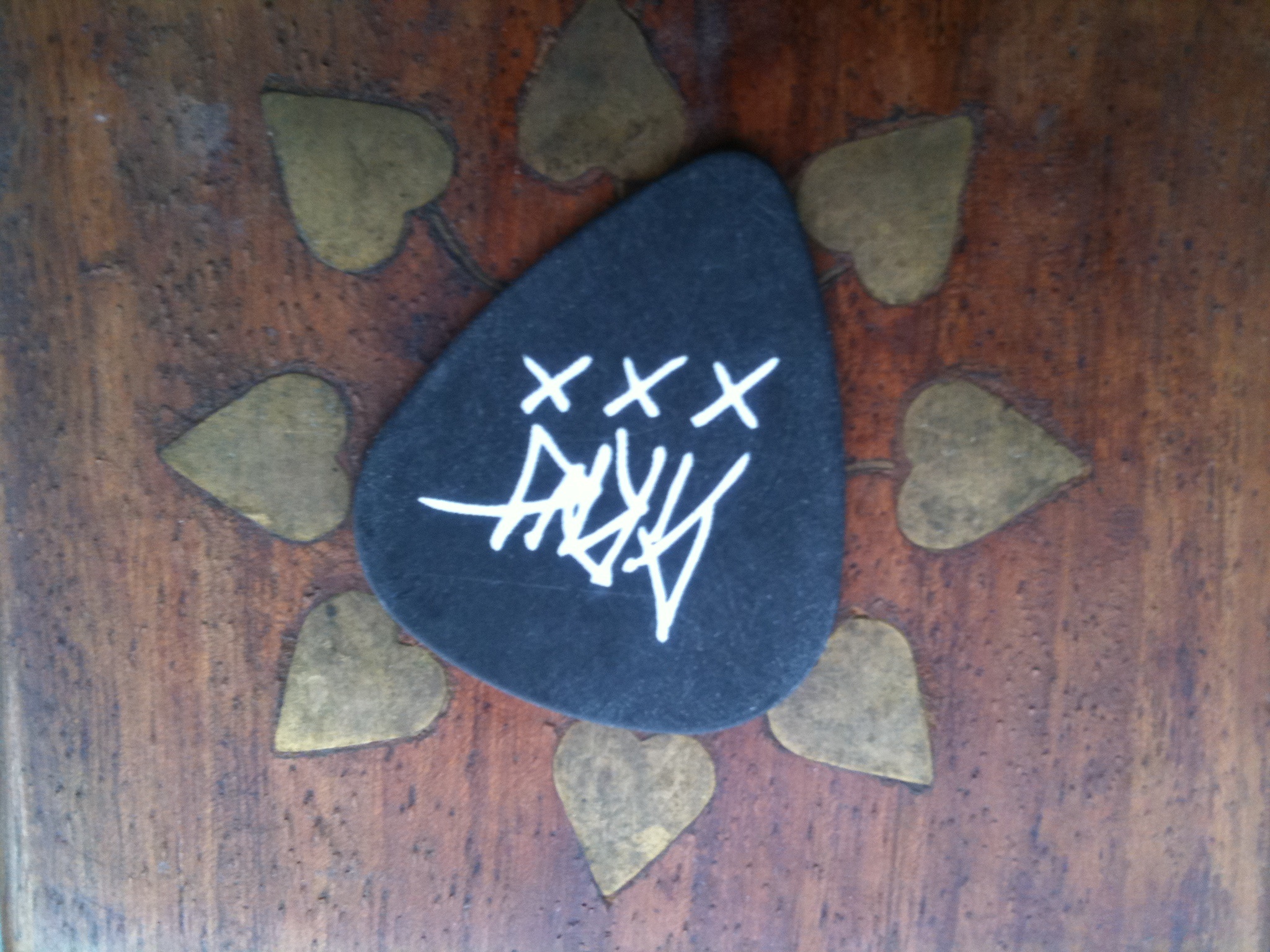 I started this show uncertain of where to be in the pit. So many people where there that I knew and I wanted to share the show with all of them. I ended up about four or five people from the barrier, and I have to say, there were so many girl fights this night, that it made me laugh. Girls were getting into arguments with each other left and right, though I have no idea why. The pit was a bit rough, but since it was mostly dicky women instead of dicky boys, it was much easier to deal with. Luckily, a really amazing thing happened during one of those “Everyone And Their Mothers On Stage Now” moments that have been happening lately, were the band pulls up a bunch of people and completely covers the stage in fan bodies. Mary R. got pulled onstage and I made a move that I will never regret: I headed straight for her spot at the barrier and spent the rest of the evening hanging out with David and G.L.O.R.I.A.!, who had sang “Longview” at Hartford last year. Mary R. made it back to her spot (a little bit more cuddly with her beau, David by this time), and I was in the spot that I love for the rest of the night: right under Mike (uh…) with a great view of Tre as well, and so close that it was great to be able to play directly with them. Mike threw me a pic, and I caught it, WITH ONE HAND, and he… was… impressed. I’m pretty happy to have one. It says “DIRNT XXX.” :wub: